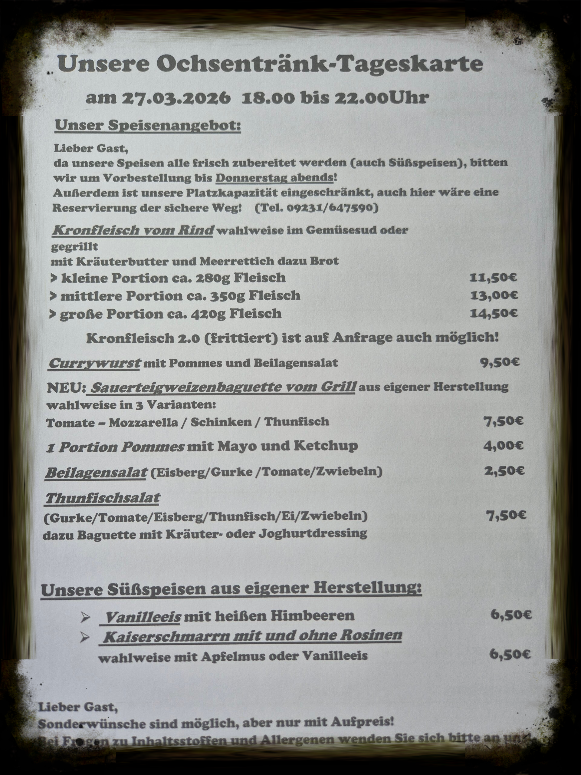 Aktuelle Speisekarte: